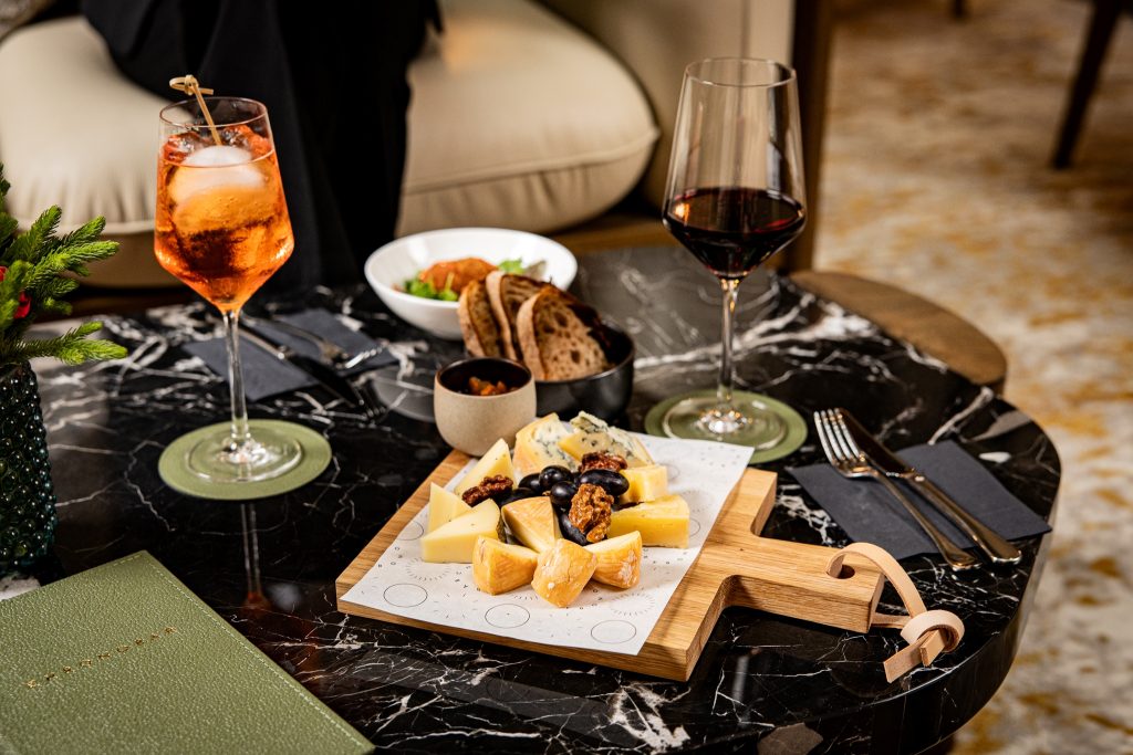 Weiter im besagten Pressetext: „Kulinarisch begleitet werden die Cocktails mit kalten Fingerfood-Kreationen, darunter Rinderfilet-Tatar auf Grillbrot, Krabbencocktail im Brioche sowie eine vegane Bruschetta mit Taggiasca-Oliven. Ergänzt wird das Angebot durch eine hochwertige Käse- und Schinkenplatte mit Brot, aufgeschlagener Butter und drei verschiedenen Dips sowie einer Auswahl an Desserts. Die