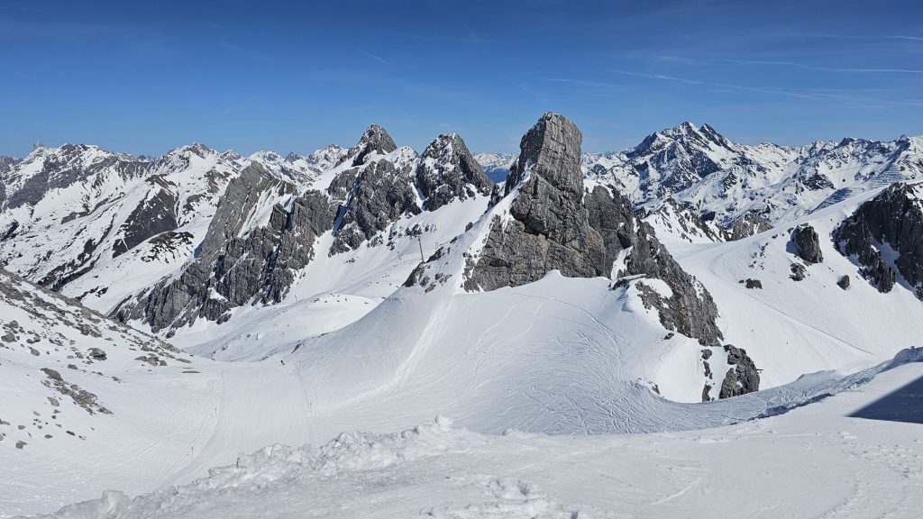 Das Skifahren in dieser Aprilwoche war – bei warmem Prachtwetter und fantastischen Schneeverhältnissen – ein Hochgenuss. Aber dafür gibt es bekanntlich keine Garantie: Man muss einfach Glück haben. Und ein gutes Fingerspitzen- bzw. Skispitzengefühl: Da gab es Pisten mit traumhaften Schneeverhältnissen (dies gegen Mitte April) in dieser atembedraubend prachtvollen Bergwelt und andere, an den Sonnenhängen, in denen der Muskelkraft und mehr Vorsicht als sonst erfordernde Frühjahrs- bzw. Sulzschnee so einige Herausforderungen bot. Jedenfalls – ein Hochgenuss, auf fast leeren Pisten und ohne jegliche Wartezeiten an den Liftanlagen, fachlich hochstehender Betreuung beim Strolz- Skiverleih unter anderem in der Dorfmitte von Lech. Ein Ort, der an eine Vielzahl von Prominenten erinnert: Die legendäre „Post“ ist bekanntlich die Herberge diverser Königsfamilie (unter entsprechender Diskretion) und Prinzessin Diana logierte bis zu ihrem tragischen Tod 1997 Jahr für Jahr im noblen Hotel „Arlberg“.