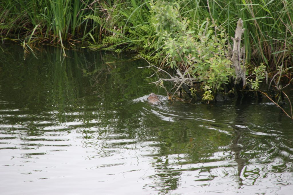 „Unterm Kiel haben wir genug Wasser“, scherzt Antje und erklärt mir dann, dass „die natürliche Tiefe des Flusses zwischen drei und vier Metern liegt, aber das Gefälle auf 100 Kilometer gerade mal 28 Zentimeter beträgt“. Weil die Strömung so schwach sei, könne ich trotzdem ohne großen Kraftaufwand „gegenan“ fahren. Die Freuden der Langsamkeit und Entschleunigung stellen sich fast von selbst ein. Ein bisschen aufgeregt bin ich nur, als ein Biber knapp vor meiner Kajaknase ungerührt die Ufer wechselt.